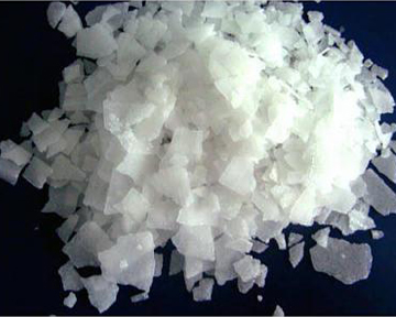片碱纯品为无色透明晶体,相对密度2.130。熔点318.4℃。沸点1390℃。烧碱有固态和液态两种:纯固体烧碱呈白色,有块装、片状、棒状、粒状,质脆;纯液体烧碱为无色透明液体。易溶于水,溶解时放热,水溶液呈碱性,有滑腻感;溶于乙醇和甘油;不溶于丙酮、乙醚。固体烧碱有很强的吸湿性。腐蚀性强,对纤维、皮肤、玻璃、陶瓷等有腐蚀作用。与金属铝和锌、非金属硼和硅等反应放出氢;与酸类起中和作用而生成盐和水。与氯、溴、碘等卤素发生歧化反应。